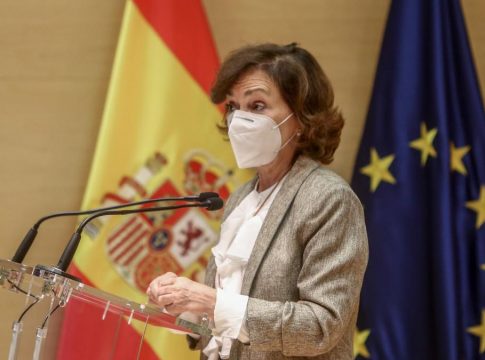La vicepresidenta primera del Gobierno y ministra de la Presidencia, Carmen Calvo, ha participado este lunes en la presentación de la campaña 'No more Matildas', para reivindicar el papel de las mujeres en la ciencia.