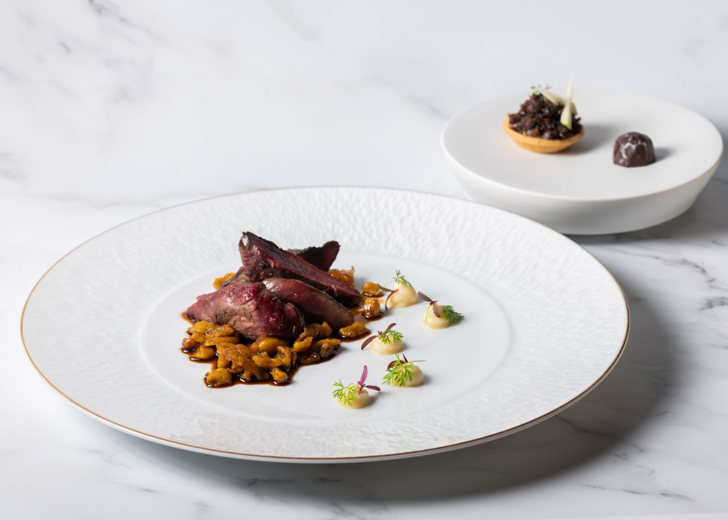 Así, fiel a la filosofía y los valores de Saddle, el chef Adolfo Santos vuelve a construir su propuesta sobre tres pilares fundamentales: tradición, elegancia y temporalidad. De este modo, el mejor producto de la nueva temporada se convierte en el absoluto protagonista de una carta de raíces clásicas contemporáneas que incorpora elaboraciones de altura como los guisantes de costa con butifarra de rabito ibérico, espardeñas y trufa negra; las angulas con yema curada y bilbaína emulsionada; las lentejas con guiso de setas y foie; la dorada salvaje con bullabesa, mejillones y azafrán; el rodaballo con toques cítricos y salsa bearnesa; el solomillo Rossini, turnedo, brioche, foie y trufa negra; el pato azulón Sauternes, manzana y späetzle; o el foie a la Poêle con salsa de escabeche, salteado de berza y garbanzos al Pedro Ximénez.