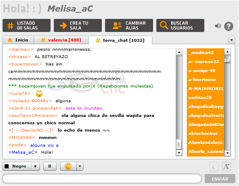 La mayoría de los usuarios del chat de Terra lo prefería para charlar con otras personas, pero había quienes buscaban algo más. Sí, como haría cualquiera en una aplicación de ligoteo de la actualidad -pero sin fotos-, las personas que chateaban podían entrar en salas donde otras personas también buscaban parejas.