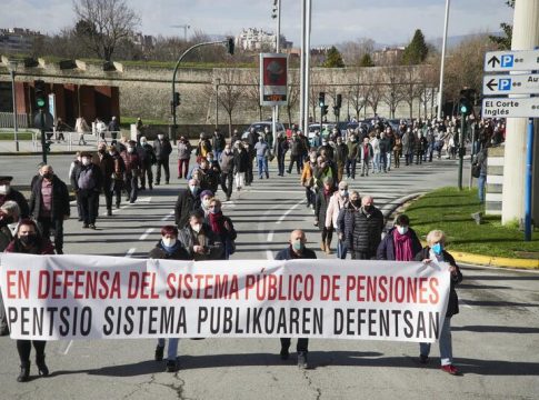 Una manifestación, respaldada por alrededor de 500 personas según la Delegación del Gobierno, ha rechazado este sábado en Pamplona las propuestas del Pacto de Toledo y ha defendido el sistema público de pensiones.