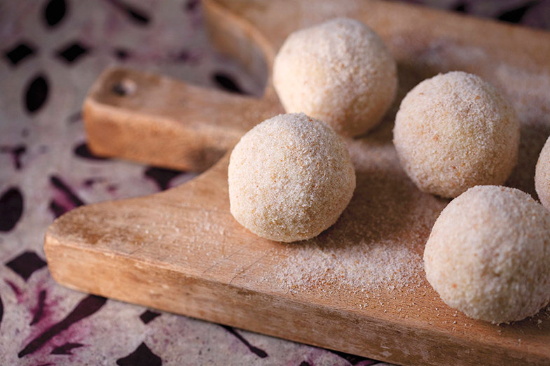 Cuando llegue el momento en que se haya enfriado la masa, comienza a hacer bolitas y empánalas pasándolas primero por una capa fina de harina, y posteriormente por huevo batido, para en último lugar, rebozarlas en pan rallado.
