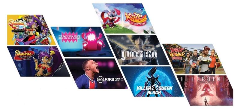 Como informa Google en el foro de Stadia, los juegos son de estudios de desarrollo terceros, e incluyen títulos como Half-Genie Hero Ultimate Edition y Shantae: Risky's Revenge - Director's Cut, que llegarán el 23 de febrero; It came from space and ate our brains (2 de marzo), FIFA 21 (17 de marzo), Kaze and the Wild Masks (26 de marzo), Judgment (23 de abril); y Killer Queen Black, Street Power Football y Hellpoint, entre otros.