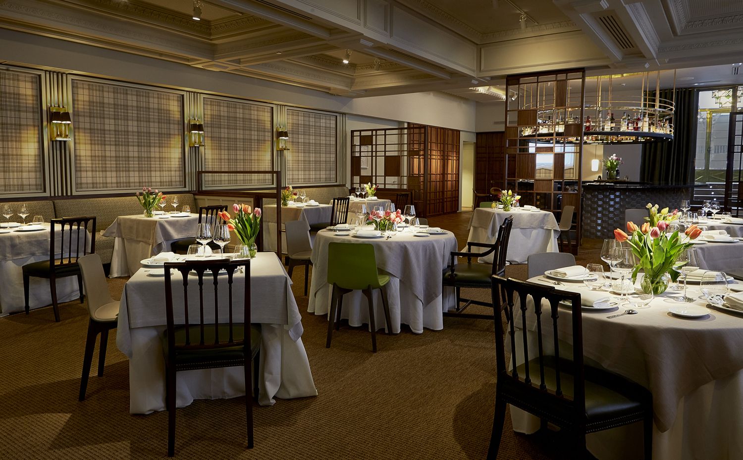 El nuevo local de Hortensio, diseñado por el arquitecto Juan Pablo Domínguez, sigue manteniendo su espíritu acogedor. Una barra circular da la bienvenida, dando paso a un discreto reservado y al comedor que muestra la misma esencia de elegancia sobria, discreta y atemporal. Los materiales nobles, colores neutros, toques tierra y esos tonos verdes característicos de Hortensio como hilo conductor, definen el nuevo espacio.