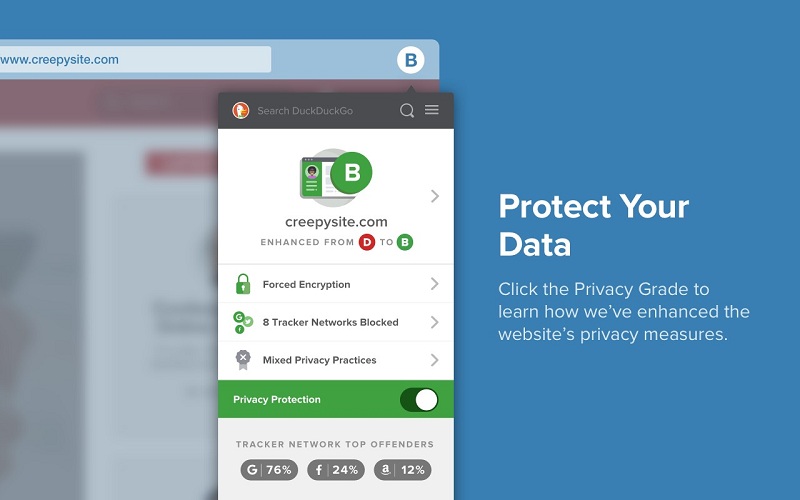 Uno de los mejores navegadores web que puedes utilizar si necesitas proteger tu privacidad. A diferencia de los gigantes como Chrome o Bing, DuckDuckGo se esfuerza para mantener protegidos los datos de los usuarios. Para que puedas mantener protegidos todos tus datos, han creado una extensión para los navegadores que utiliza un pack de diferentes herramientas para poder llevarlo a cabo.