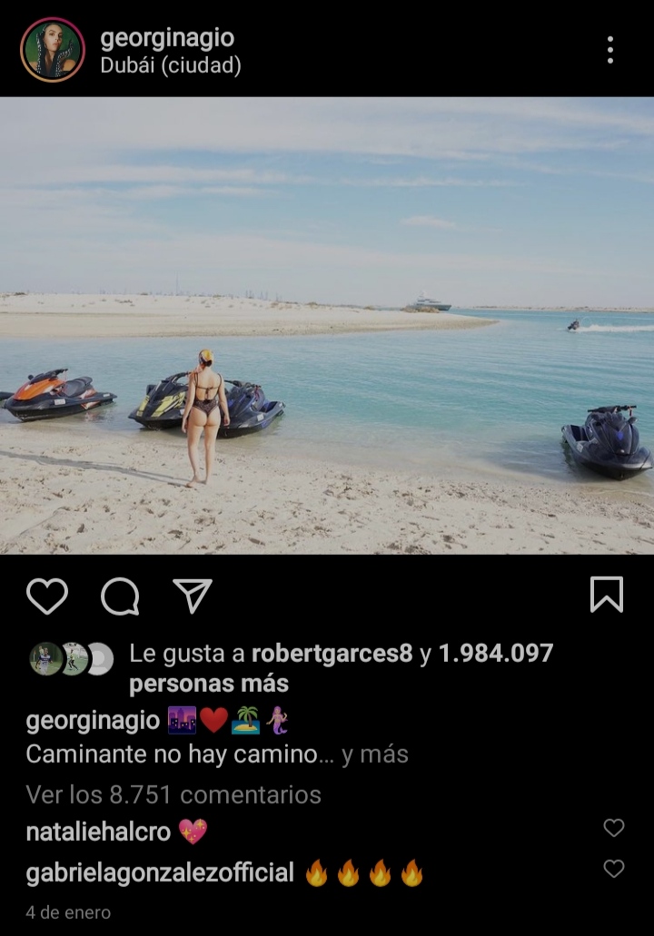 Y así lo ratificó la influencer nacida en Buenos Aires a través de la ardiente publicación que llevó a cabo en su cuenta de Instagram el pasado 4 de enero, en la que se le puede observar posando sensualmente de espaldas a la cámara con un ajustado y llamativo traje de baño, el cual permitió a todos sus seguidores disfrutar de sus gigantescos y jugosos glúteos.
