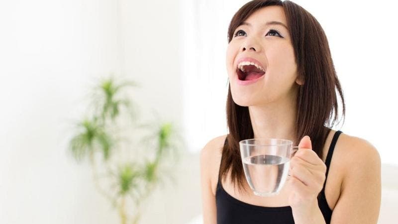 - Coges agua tibia con sal y haces gárgaras