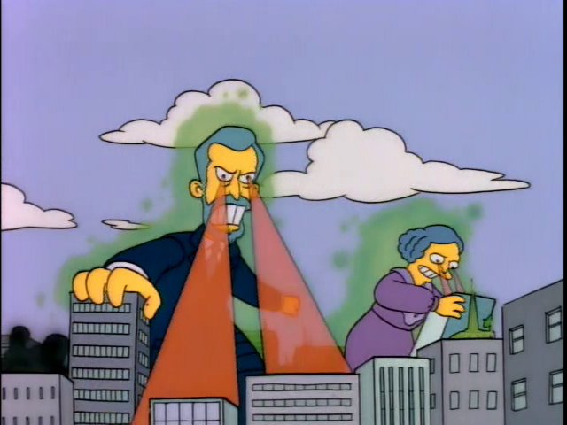 Por otro lado, Bart se imagina a los profesionales del área como unas personas con grandes poderes que pueden expulsar rayos por los ojos. Incluso, con el poder de destruir lo que ellos quieran.