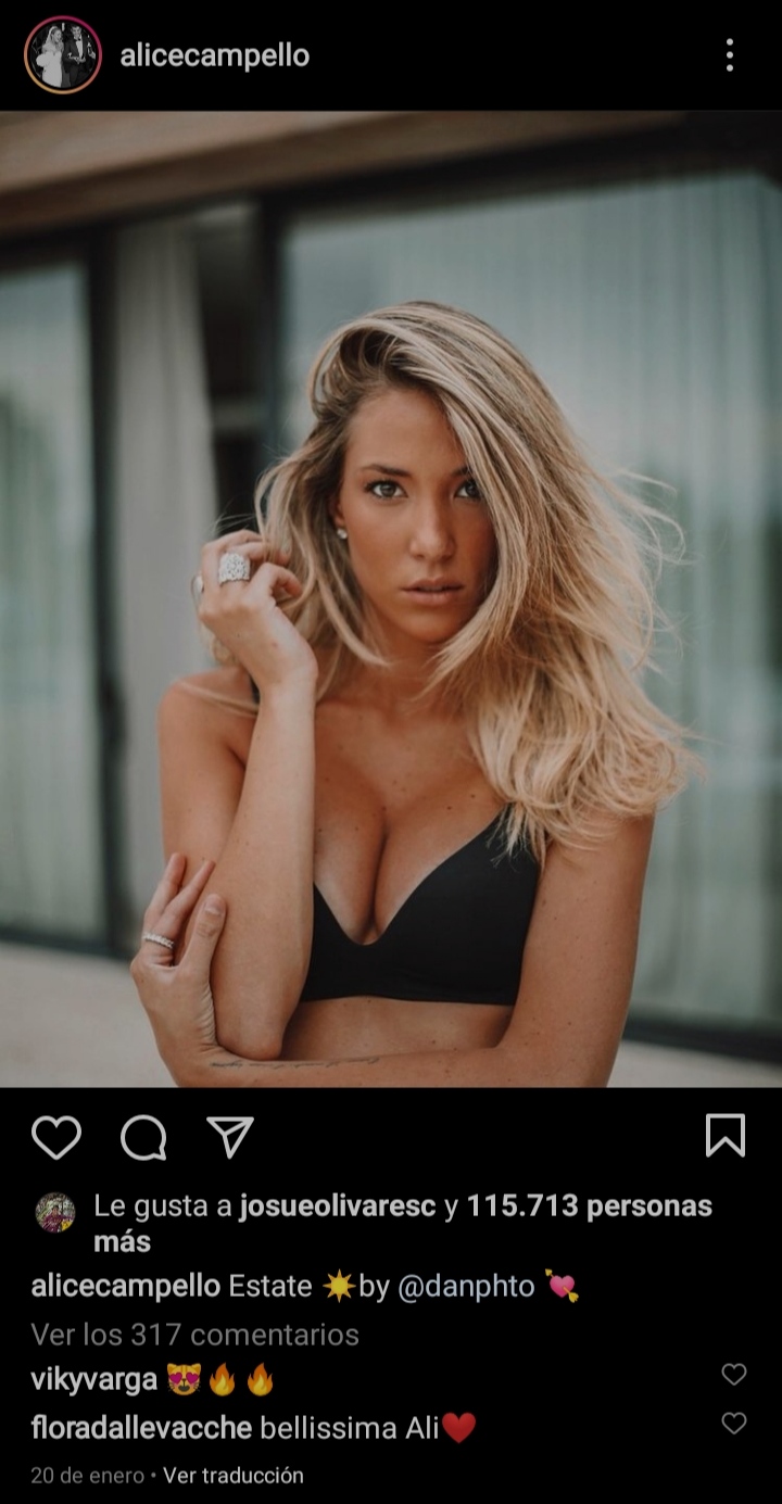 Alice Campello es una de las mujeres más hermosas, sensuales, atrevidas, atractivas, picantes y despampanantes que se ha podido ver en toda la historia del balompié mundial y en toda la existencia de la Juventus de Turín de la Serie A de Italia, producto de su relación amorosa con el ariete estrella español, Álvaro Morata, quien casi siempre se rinde ante sus pies debido a su increíble aspecto físico.