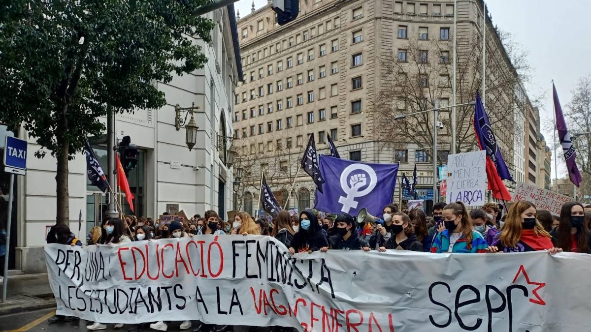El Sindicat d'Estudiants dels Països Catalans (Sepc) y el Sindicat d'Estudiants (SE) han organizado sendas movilizaciones en Barcelona y en otras ciudades catalanas para exigir una "educación feminista" y protestar contra la violencia machista, en el marco del Día Internacional de la Mujer, este 8 de marzo.