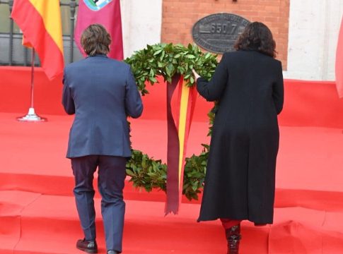 Los encargados de depositar la corona bajo la placa que homenajea a las víctimas han sido la presidenta del Gobierno regional en funciones, Isabel Díaz Ayuso, y el alcalde de la capital, José Luis Martínez-Almeida.