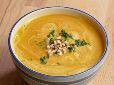 En esta oportunidad, la crema de calabaza es acompañado de zanahoria.