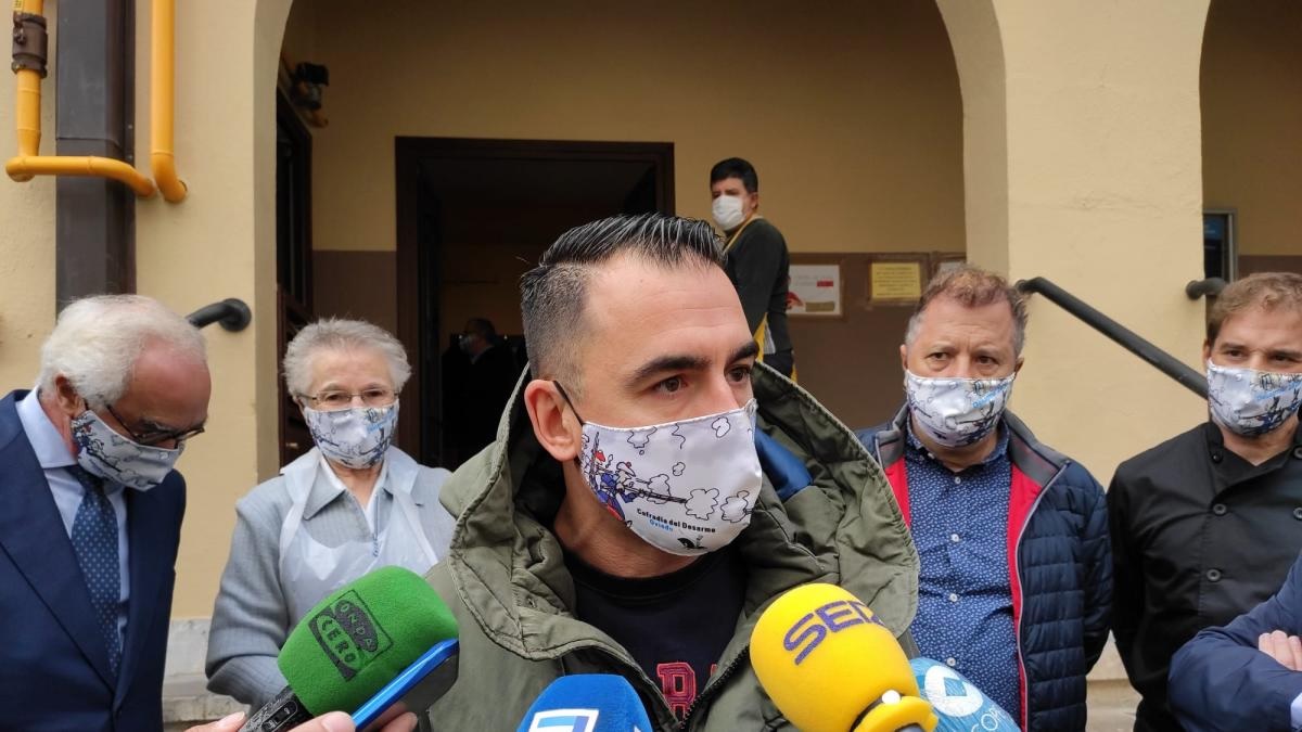 González ha participado junto a hosteleros del Bulevar de la Sidra de Gascona en una concentración organizada por la plataforma 'La fuerza del norte', por la que todos los hosteleros de Galicia, Asturias, Cantabria y País Vasco estaban llamados a salir a la puerta de su negocio para pedir ayudas cuando se cumple un año del estado de alarma a causa de la pandemia del coronavirus.