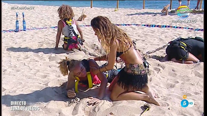 En esta ocasión, Ana María Aldón intentó tirar con todas sus fuerzas sin conseguir moverse del sitio. La mujer de Ortega Cano aguantaba el empuje de sus adversarias mientras gritaba de dolor, pero ella no se rendía aunque estuviera viendo las estrellas. Cuando la prueba finalizó, Ana María no se podía mover y el médico la tuvo que examinar sobre la arena. Afortunadamente, no tuvo ninguna lesión y se coronó como la ganadora de la prueba al haber conseguido moverse una mayor distancia.