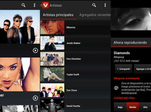 Vevo también está disponible en las principales plataformas móviles como iPhone y Android, y también en otros tipos de plataformas de entretenimiento como Google TV y Xbox 360.