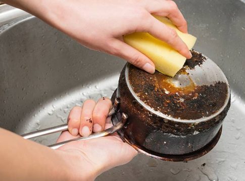 En caso de las quemaduras por fueras puedes intentar el mismo procedimiento pero dejándolas remojadas un buen rato y luego te ayudas con una esponja de metal. Se dice que este paso es sumamente efectivo y de mucha ayuda para el aseo de todo tipo de ollas que permitan la limpieza con estos materiales.