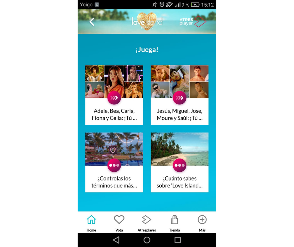 Hasta aquí lo que de momento se puede hacer con la app de 'Love Island' dentro del universo multicanal que han vendido con su promoción. Ahora bien, como toda aplicación, requiere de contenido actualizado casi a diario para conseguir recurrencia y permanencia de usuarios. Así, por ahora, además de jugar a ver quién es tu favorito o a quién no consideras atractivo, puedes zambullirte en los términos o diccionario básico para no perderte nada de lo que vaya pasando en el programa. También está el típico Quiz de cuánto sabes de... Dicha sección se encuentra disponible haciendo scroll o bajando la home de inicio nada más acceder a la aplicación.