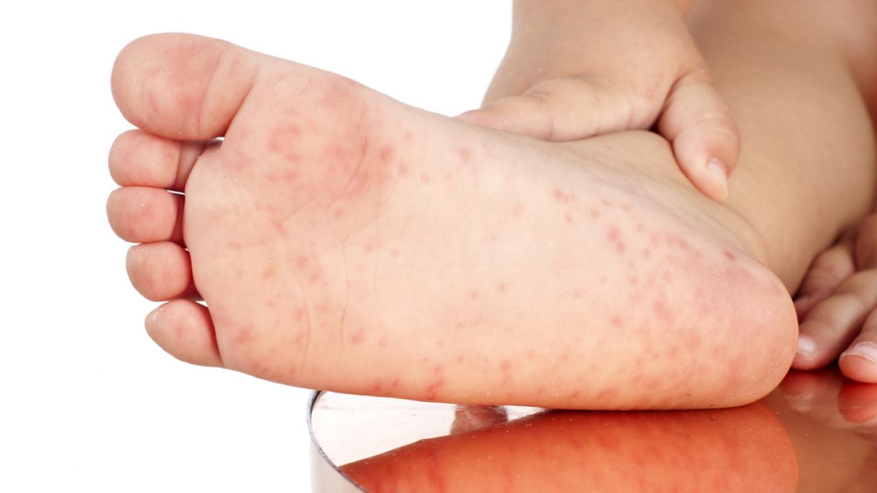 - Áreas pequeñas, rojas y que pican en las manos y los pies.