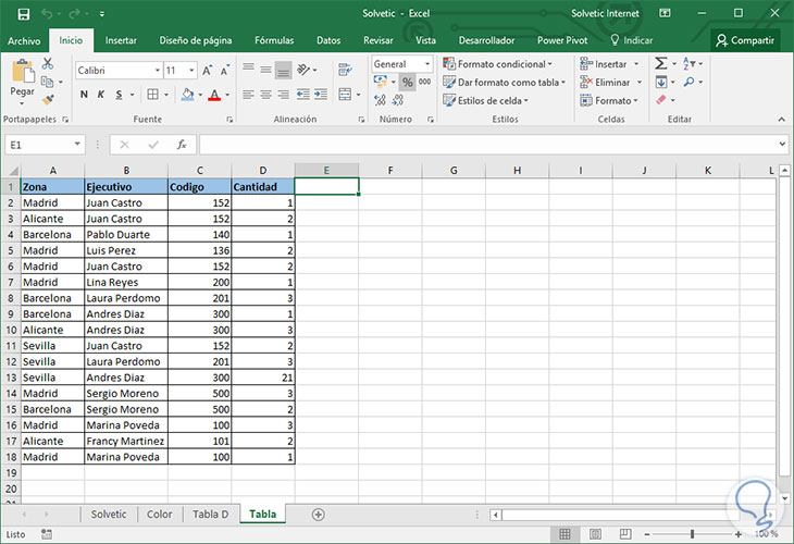 Si se desea una tabla dinámica adicional, como ventas por representante de ventas, o suma de ventas unitarias por artículo y región, regresa a la pestaña que contiene los datos originales, sigue los mismos pasos usando el botón de tablas dinámicas recomendadas, desplázate hasta que veas la tabla deseada, y selecciónala.