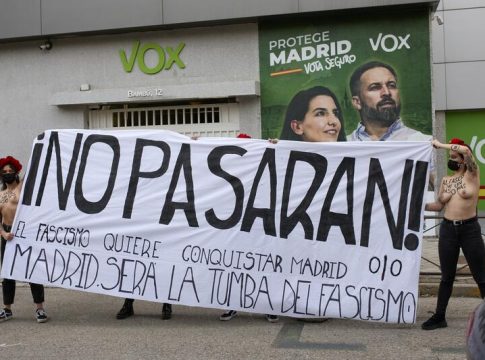 No es la primera vez que activistas de Femen se manifiestan contra Vox. Ya lo hicieron en el acto de cierre de campaña de las elecciones generales de abril de 2019, cuando irrumpieron en el escenario instalado en la plaza de Colón de Madrid poco antes del inicio del acto.