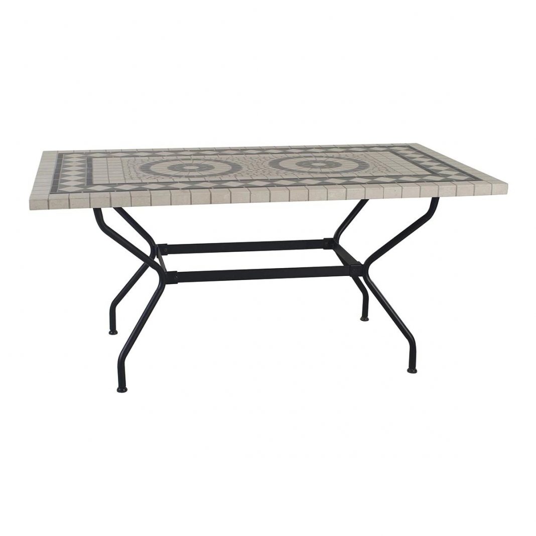 Esta mesa tiene un precio de 319€ y cuenta con envío gratis durante unos días. Tiene como medidas 90 cms de ancho x 75 cms de alto x 160 cms de largo pesando un total de 51 kilogramos. Esta mesa es diferente a las demás ya que está realizada con acero, y como característica especial tiene las patas un poco torneadas. La superficie de la mesa es de piedra y tiene un diseño hermoso de mosaico que dejará sin palabras a todos los amantes del arte.