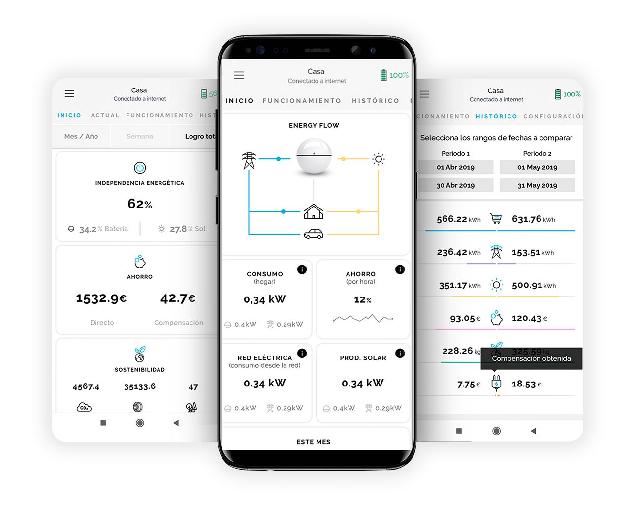 De esta forma, el usuario puede conocer en tiempo real su gasto energético, calcular el potencial de ahorro de una posible instalación fotovoltaica con o sin batería y valorar el ahorro de CO2 que genera, así como otros datos de reducción de impacto medioambiental.