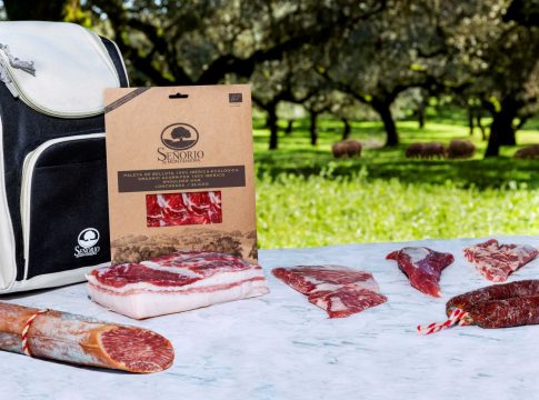 - El estuche, de venta en la web www.tienda.senorio.es, está pensado para seis personas y contiene una selección de carnes frescas y productos curados de la línea de ibéricos de bellota ecológicos de Señorío de Montanera.