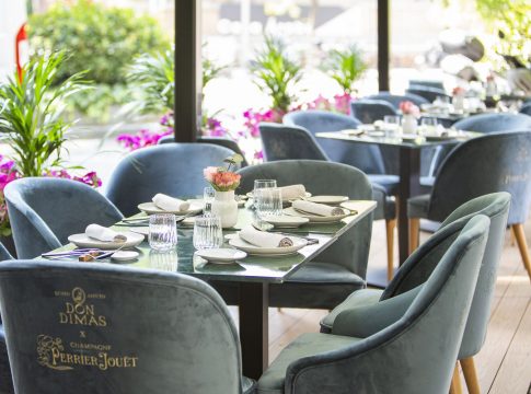 Igual que el interior, sofisticado, elegante y cosmopolita de esta casa de comidas con alma de bistró parisino, se presenta la terraza de Don Dimas. Un rincón que de nuevo presume de una refinada decoración a cargo de Pablo Peyra quien, en esta ocasión, ha contado con el apoyo de Perrier Joüet. La elegancia e intimidad se han adueñado de su atmósfera en la que reina una delicadeza bucólica, con coloridas flores, y refinados juegos de texturas de madera y terciopelo, que invitan al comensal a relajarse y a disfrutar sin mirar el reloj. Y es que, en la terraza de Don Dimas, se puede disfrutar de su oferta líquida, sin interrupciones, de 13:30 a 23:30h.