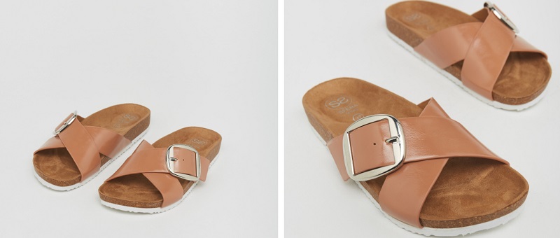 El último modelo que Sfera ha rebajado de cara al verano es esta sandalia plana con una maxi hebilla. Cuentan con dos tiras cruzadas presididas por una gran hebilla con la que puedes ceñir el calzado o soltarlo.
