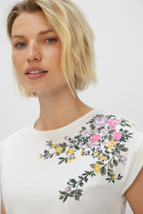 9CAMISETA ORGÁNICA CON FLOR BORDADA EN ALGODÓN