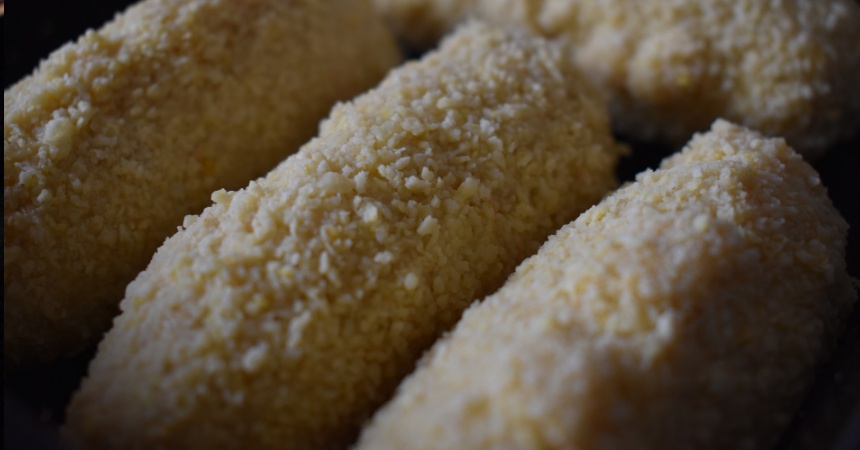 Otro de los puntos críticos para que no se te abran las croquetas es hacer un buen rebozado. Recuerda, lo primero, que tu masa ha de estar fría como te explicamos antes. A la hora de ponerlas en el huevo, el huevo debe estar muy bien batido y no deben quedar grumos.