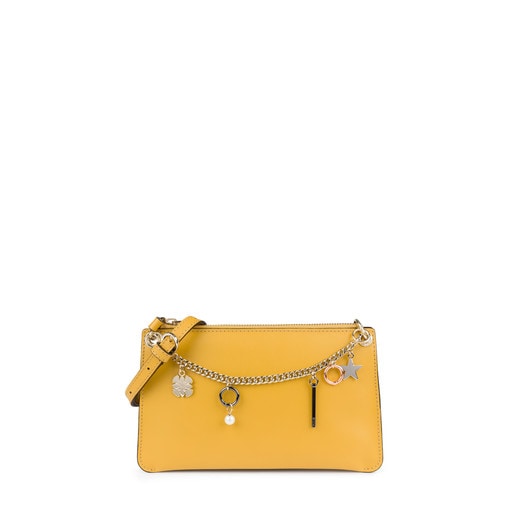 Con un 50% de descuento, ahora podrás llevarte a casa este bolso bandolera de piel en color mostaza a tan solo 64 euros. Posee cierre con cremallera, apliques personalizados en tonos dorado pálido, rosa y negro y asa de bandolera ajustable.