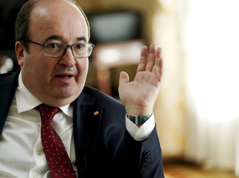 Miquel Iceta ha asumido este lunes 12 de julio la cartera del Ministerio de Cultura y Deporte reclamando la importancia de "hablar de España", algo que "a la gente le cuesta" pero que el político catalán intenta reivindicar portando una insignia con el escudo español como en este acto.
