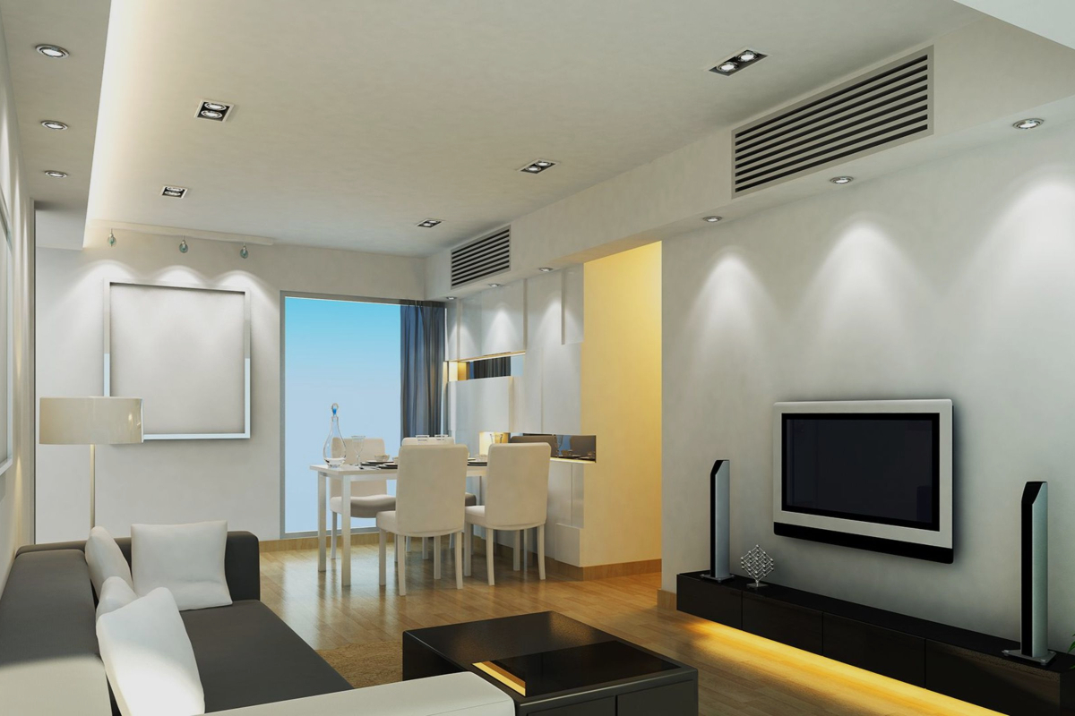 Si quieres algo más concreto la solución eficaz y definitiva para ocultar el aire acondicionado podría ser un cajón de obra y cerrarlo en el techo. Haciendo que se convierta, al menos estéticamente, en un aire acondicionado centralizado.