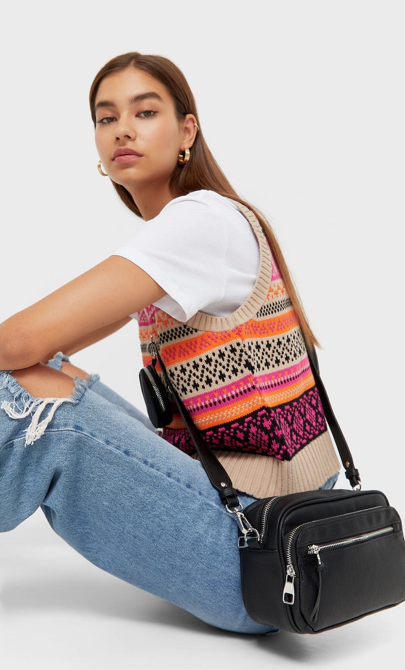 Otra propuesta que nos ofrece Stradivarius es esta bandolera con cremallera. Se trata de una opción más clásica que pega con todo. Además, cuenta con tres bolsillos independientes en los que vas a poder guardar tus objetos por separado.