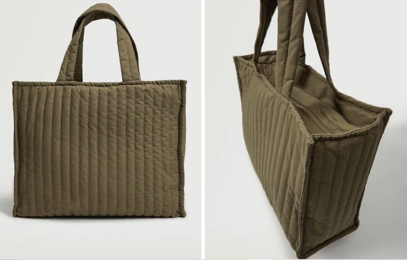 Siguiendo con la línea de maxi bolsos, Mango nos presenta este shopper acolchado, que es mucho más que una bolsa de la compra. Está fabricado al 100% de algodón y cuenta con un forro interior.