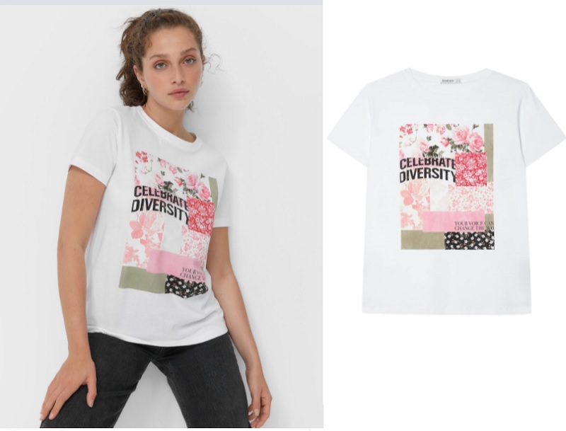 Además, se puede leer la frase "Celebrate diversity", que en castellano significa "Celebra la diversidad". En la parte de abajo, está otra frase (Your voice can change the world), que significa "tu voz puede cambiar el mundo". Esta camiseta con mensaje reivindicativo de Stradivarius está a la venta por apenas 5'99€. Pero esta no es la única ganga de la cadena de Inditex...