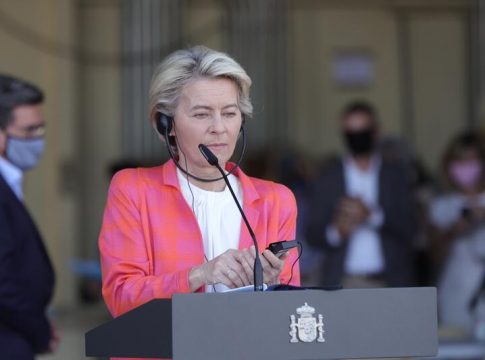 Von der Leyen ha comparecido ante los medios en la base de Torrejón de Ardoz (Madrid), acompañada del presidente del Gobierno de España, Pedro Sánchez, y del presidente del Consejo Europeo, Charles Michel, donde ha visitado las instalaciones temporales de acogida de refugiados afganos procedentes de Kabul, ahora mismo en un momento de extrema tensión tras la reconquista talibán del país.