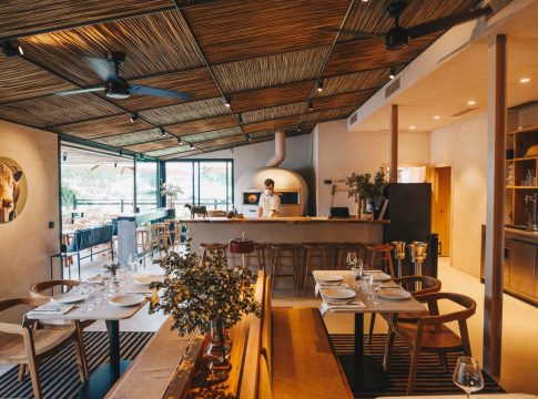 El local, una casa de una sola planta a escasos metros de Pan de Cuco, lleva la firma del estudio de interiorismo de Sandra Tarruella y evoca también el bienestar y las sensaciones del entorno: un paraje de senderos y prados llenos de vacas que confluyen con el paso de los surfistas que van a disfrutar de las olas a las playas de Somo y Langre. La fachada del restaurante está cubierta de lamas de madera de iroco y la terraza, con capacidad para 80 comensales, vistas al campo y una zona chill out con mesas y sofás bajos, se encuentra cubierta por una gran pérgola fabricada artesanalmente con placas de caña y decorada con abundante vegetación.