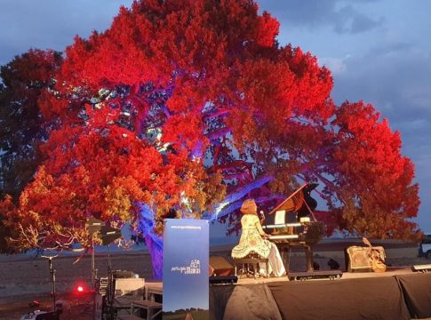 Como parte de las actividades paralelas para promocionar y apoyar esta iniciativa, este jueves también se ha inaugurado la escultura 'Sabina de Hierro 2.0', del artista local Jesús Gallar Rodrigo. Posteriormente, la cantante aragonesa Carmen París, madrina de la candidatura, ha actuado bajo el árbol milenario ante un aforo completo de más de 400 personas.