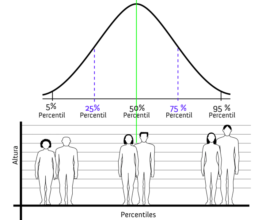 En las estadísticas médicas, el percentil es una medida de la dispersión de una distribución estadística que se ordena según el rango o el tamaño de los valores individuales. Se utiliza principalmente para evaluar el desarrollo de la altura y / o el peso de niños y adolescentes.