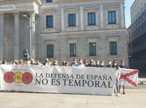La Unión de Militares de Tropa (UMT) se ha concentrado este sábado frente al Congreso de los Diputados para exigir que finalice la temporalidad en las Fuerzas Armadas y la aprobación de una ley única de la carrera militar.