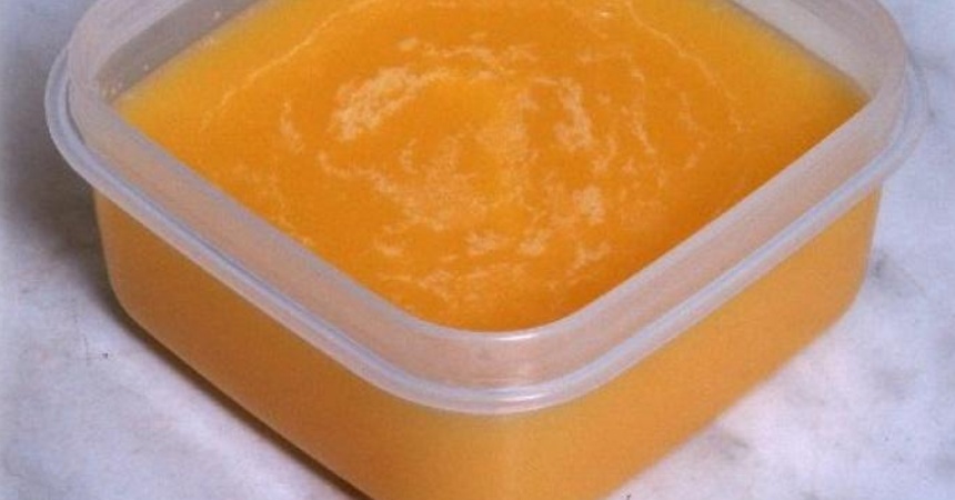 Cuando la desmoldes observarás que en la parte de abajo tiene una capa de color y consistencia diferente; esta, es la proteína de las gambas y aunque está llena de sabor, no es de utilidad para la mantequilla. Raspa con la ayuda de un cuchillo toda esa especie de masa suave que se ha formado y no la deseches, la puedes usar para hacer una pasta, arroz o potenciar el sabor de cualquier platillo.