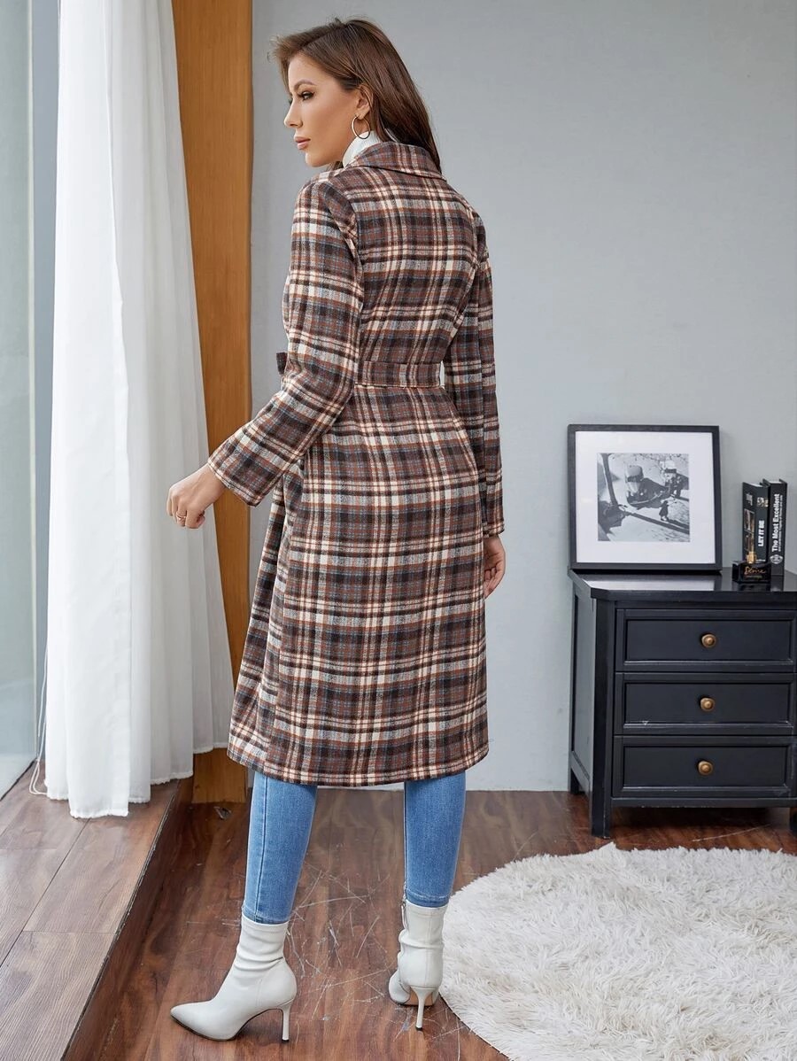 5Abrigo de cuadros de cuello con solapa con cinturón