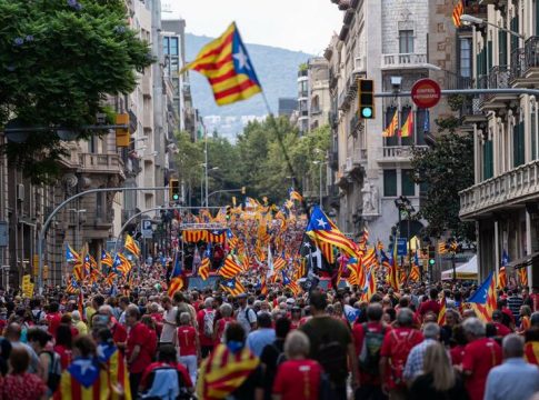 La manifestación se celebra este año bajo el lema 'Lluitem i guanyem la independència' (Luchemos y ganemos la independencia) y los asistentes han comenzado la marcha al grito de '1 de Octubre ni olvido ni perdón' e 'I - inde - independencia'.