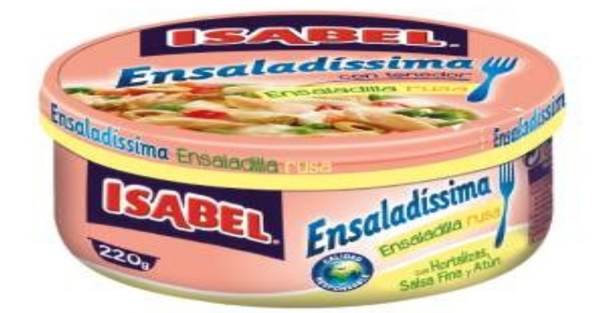 A simple vista económica y también prometedora gracias a que no es necesaria su refrigeración; en la ensaladilla de Isabel, son las hortalizas, salsa fría y atún son los que figuran como sus componentes, al tiempo que señalan como información nutricional un aporte de 1025 Kcal, apenas 4 gramos de proteínas, 22. 3 gramos de grasa y unos 2.3 gramos de grasas saturadas.