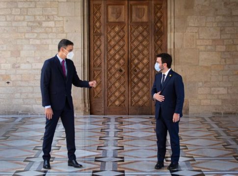 Así, Sánchez y Aragonès han sido los encargados de fijar la metodología y los contenidos del diálogo en su encuentro a solas que ha comenzado a las 15.00 horas, y del que darán cuenta ante los medios de comunicación en las comparecencias que harán después, por separado.
