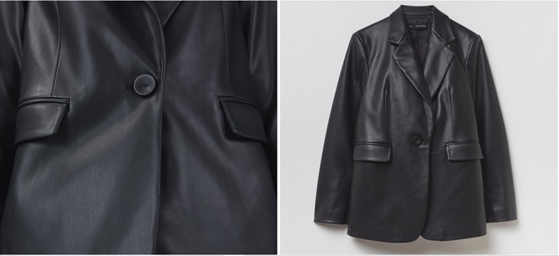 Para la parte de arriba, Sfera también tiene prendas con efecto piel. Este es el caso de esta americana o blazer con solapas, ideal para los meses de entretiempo. Cuenta con un botón delantero para cerrarla y con dos bolsillos. Es el conjunto perfecto para los leggings de antes. La cadena propiedad de El Corte Inglés vende esta americana por 49'99€.