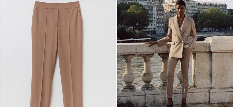 Sfera tiene a la venta el pantalón que hace conjunto con la americana anterior. La parte de abajo la puedes combinar con unos zapatos de tacón negros que van a estilizar tus piernas y hacerte parecer más alta. Se trata de un pantalón liso de traje de color camel con bolsillos laterales. Cuenta con cremallera y cierre de botón. Puedes comprarlo por 35'99€.