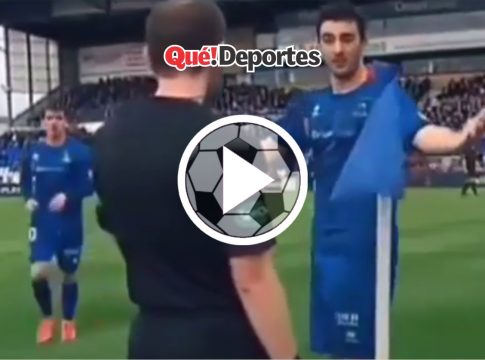 ¡Que gran jugada!. El futbolista parece que está discutiendo con el juez de linea pero en realidad estabra tramando una jugada que terminaría en gol.