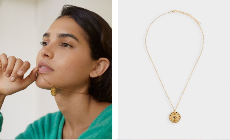 Regresando con la línea de collares de esta marca, nos encontramos con este realizado en acero inoxidable. Cuenta con una medalla como colgante en la que aparece un ojo rodeado de cristales de colores. El color dorado en el que está bañada esta joya va a pegar con todos tus looks. Puedes adquirir en las tiendas de Parfois o en su página web por solo 22'99 euros.